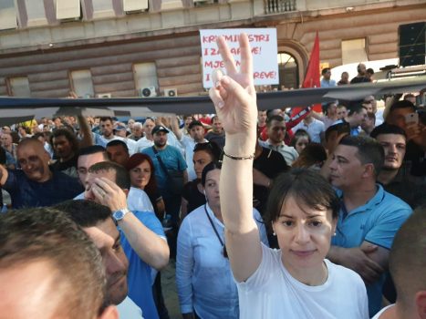 Në foton e siguruar nga BalkanWeb shihet sesi ajo është e veshur sport mes mijëra protestuesve të thjeshtë të opozitës dhe të PD.