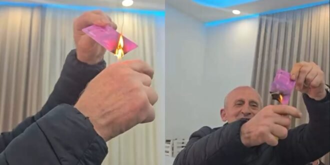Video është shpërndarë në rrjetet sociale nga kandidati Basir Çollaku, teksa gjatë momentit kur minatori djeg teserën, dëgjohen thirrjet “Rama ik” apo “Rama legen”.