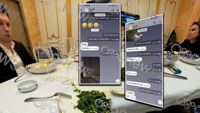 Ai shfaqet ne ambientet e një salle “privé” në një restorant me ushqim deti pranë Liqenit të Thatë, Tiranë.