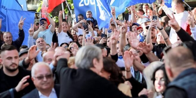 Elbasani pritje madhështore Berishës, dhjetëra mijëra në shesh! Me dhjetëra mijëra qytetarë janë derdhur në sheshin para stadiumit të qytetit të Elbasanit për të pritur